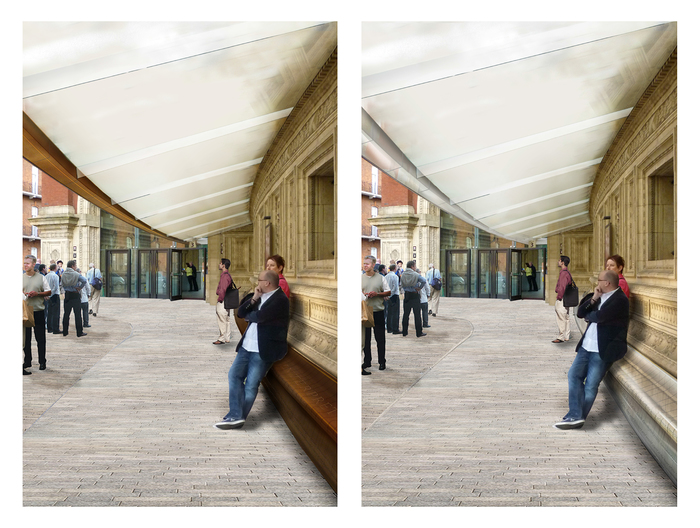 The proposals are built upon extensive research and analysis into the safety, movement and behaviour of users around the Hall, which revealed specific hotspots for photos – the Royal Albert Hall and the Albert Memorial are two of London’s most visited and photographed monuments – areas of crowding and vehicular conflicts at performance arrival and departure times, and desire lines leading to and from the Hall. The research was enabled by the Research Fellowship awarded to Deborah Saunt by the Royal Commission for the Exhibition of 1851 in February 2010. Awarded biennially, the Fellowship supported an intensive research programme to develop conceptual ideas and a long-term vision for the Commission’s legacy estate in South Kensington