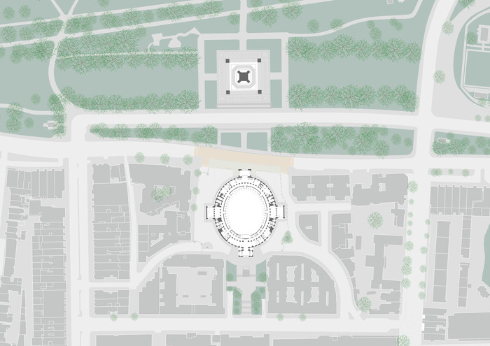 DSDHA’s public realm vision seeks to transform the area into a rightful setting for the Royal Albert Hall, respectful of the axial order and character of Albertopolis, and to enhance site-wide connectivity and accessibility between the Hall, the Albert Memorial and Kensington Gardens. A new safe public space with step-free access will be created through a series of interventions, such as the meandering routes embedded in the soft landscaping of the South Steps, pavement widening in front of the North Porch, and the elimination of a historic triple-kerb condition along Kensington Gore. The initial phase of improvements was completed on the north side of the building in January 2022, delivered in collaboration Westminster City Council.