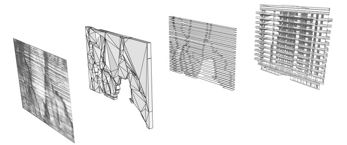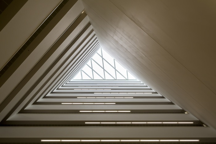 The apartments are organised around a unique atrium which provides a protected shared space to the building. This brings a sense of community and luxury without having an additional budget to the surrounding blocks in the Olympic Village. Externally, the balconies gradually shift across the building’s facades responding to daylighting analysis to maximise the environmental orientation of each apartment, and to create a sense of landscape responding to the site’s geology.