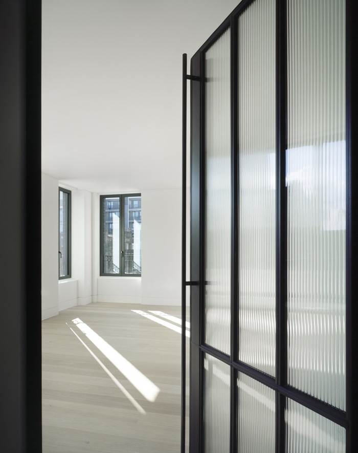 Corner House provides a mix of private and affordable homes, along with a commercial space on the ground floor. Over its six-storeys the building comprises 11 apartments, nine private (11,700 sq ft) and two affordable (1,900 sq ft) residential units, all of which are focused on having double or triple aspect rooms with exceptional levels of daylighting.
