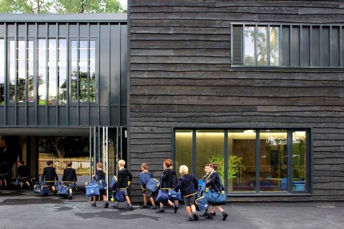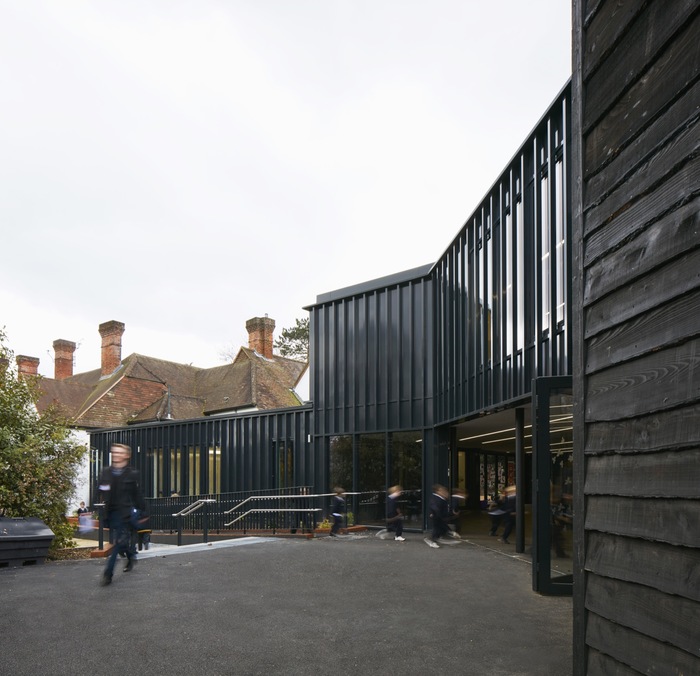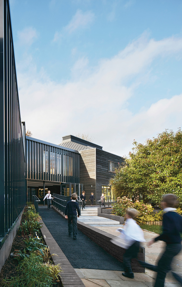 - The Link, which lightly touches the adjacent listed facade to provide a connection between the new extension and the rest of the school as well as a new library