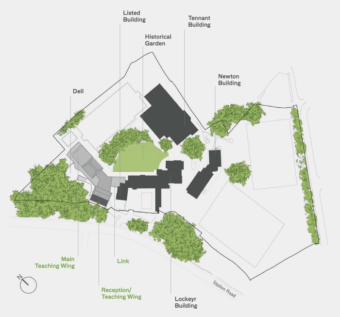 - The Main Teaching Wing to the north, set around the verdant Dell, and accommodating a new hall below