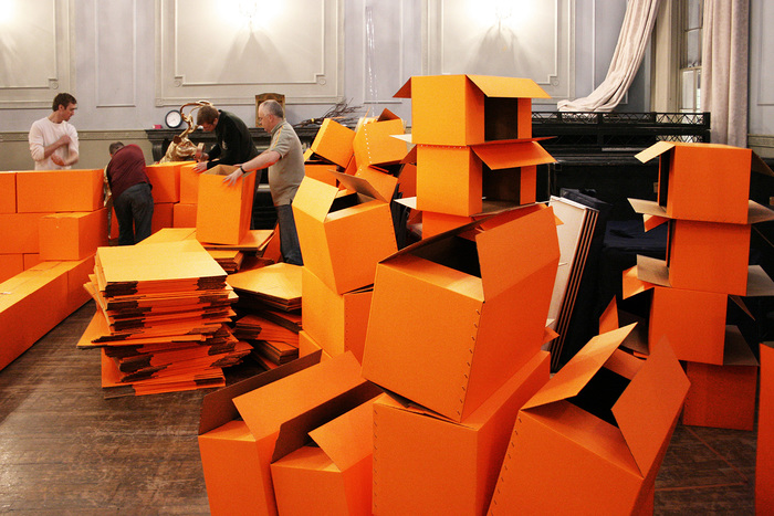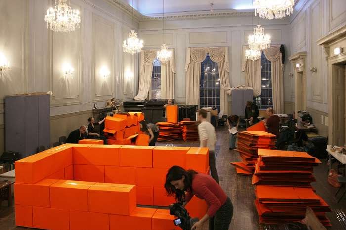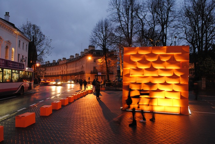In November 2009 a temporary transformation of Exhibition Square was carried out over a weekend as a public event, using over 1,000 orange cardboard boxes, a team of performers, and interactive sound and light installations, to encourage public participation with public space and to question how public space can and should be used.