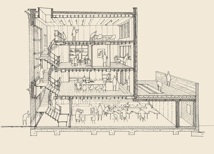 Alex’s business, and the architectures which accommodate it, involve the city in their daily routines. They do so aesthetically, socially and economically, contributing to the urban renaissance of the area; following a model which is very different from the segregated anti-city of zoned areas of industry or city within the city of Google or other multinational agencies which keep everything in-house.