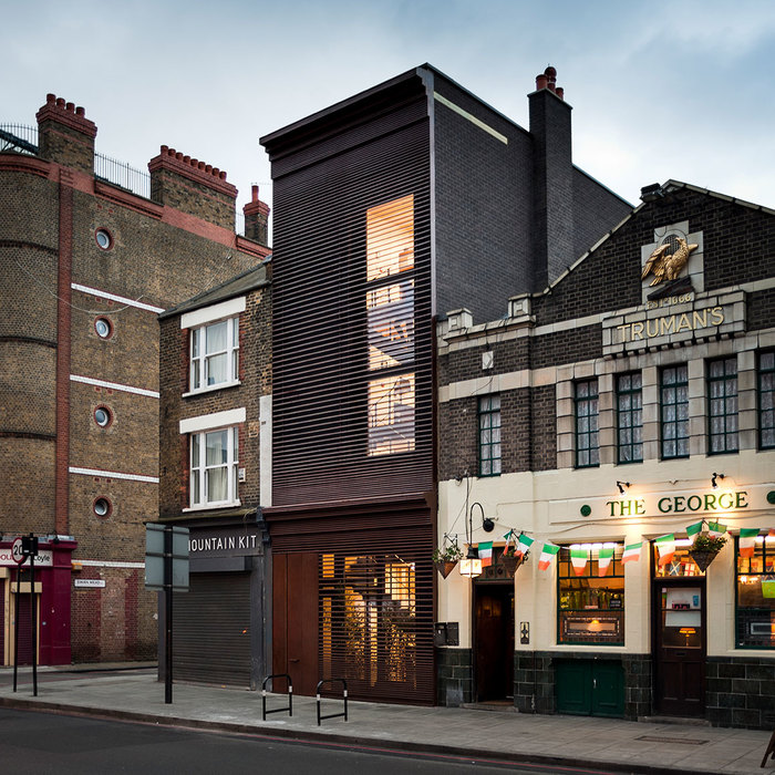 Located between a pub and a shop, this new-built four storey workshop presents an enigmatic and finely crafted storefront. Its bespoke weathered steel external skin responds to the eclectic surrounding brick architecture, whilst clearly signalling the building’s function as being neither retail nor residential. Its materiality hints at a world of creativity and artistry; it marks the presence of a type of activity that, although at risk of disappearing, is now more than ever central to our city’s cultural and economical well-being and as such deserves recognition.