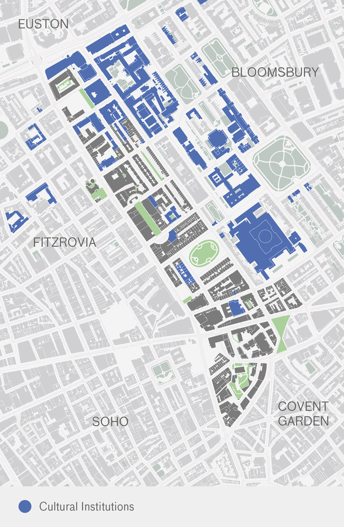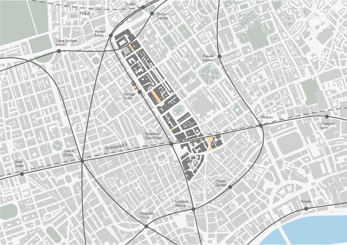 Central London awaits an unparalleled population surge, with hordes of super-commuters being brought into the West End by Crossrail and HS2, and joining existing Londoners on the already crowded narrow historic pavements. As principal designers, DSDHA have led a team of landscape architects, transport engineers and lighting experts working on the rejuvenation of the area between Tottenham Court Road and Gower Street.