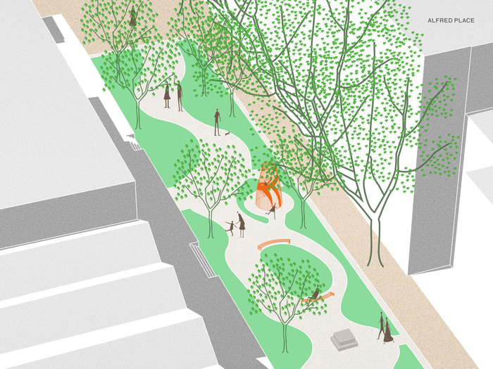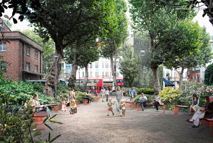 Our strategy has removed the one-way system on these two arteries to slow the pace of vehicles and make space for much-needed high quality public amenity, which accommodates pedestrians and cyclists. This redesign incorporated five new public spaces, including Whitfield Gardens, Princes Circus and a new park in Alfred Place – the first green space in the West End for over 100 years.