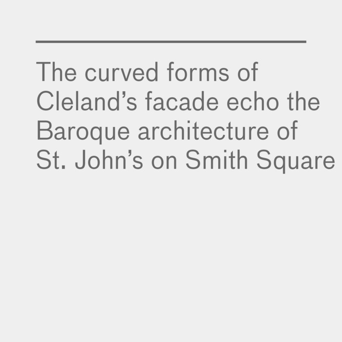 The scheme replaces two formidable 1930s ministerial buildings and mediates between the monumental scale of modernist blocks by Lutyens and Ward and the tight historic urban grain of Horseferry Road to the north, while the curved forms of Cleland’s facade echo the Baroque architecture of St John’s on Smith Square.