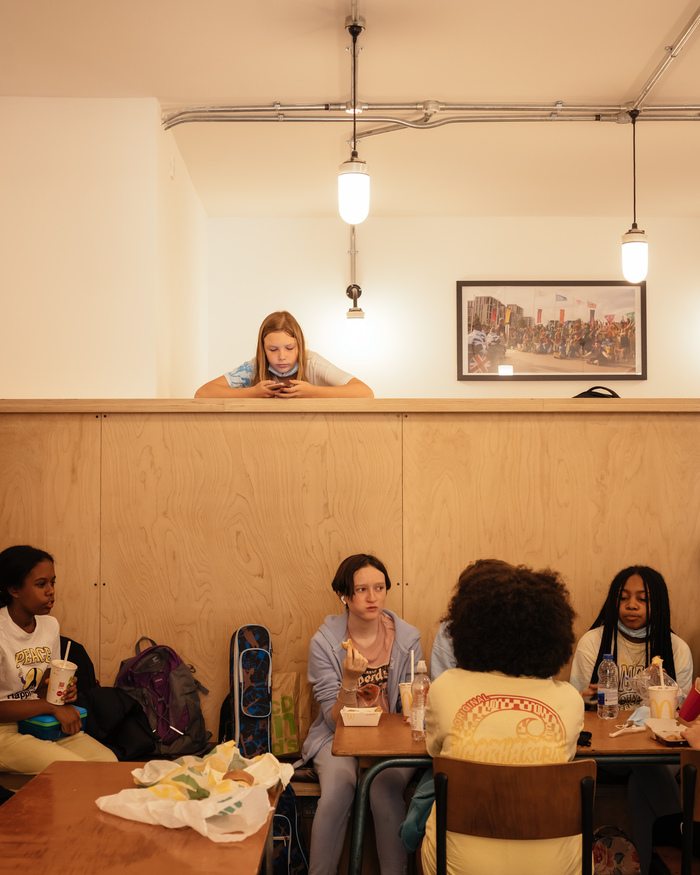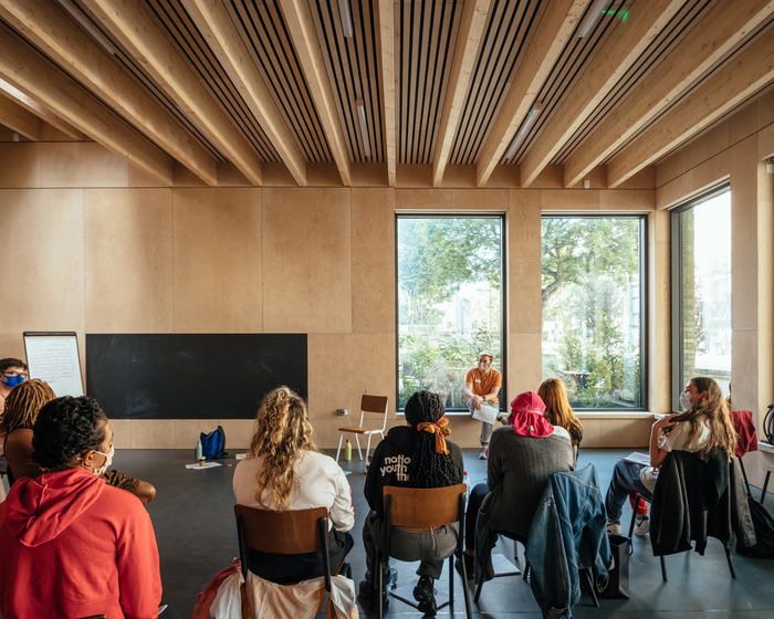 This welcoming pavilion and the improved public realm bring the NYT out into the forecourt, better integrating the institution into the street, as well as revealing the backstage activities that are a fundamental part of the NYT’s working life. The pavilion is designed to changes over time – both day-to-day and seasonally – from a space for teaching, to a venue for performance, and even to a hub for community events.