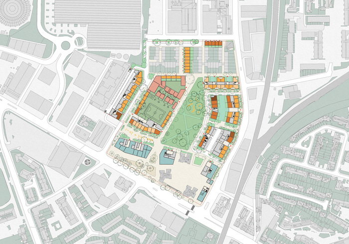 Building on previous successful collaborations, DSDHA heads a group brought together specifically for the project, ‘Common Grounds’; comprising young local design firm Kennedy Woods; interdisciplinary design collective RESOLVE; and the education architects Hayhurst & Co., with whom they have previously successfully worked at Central Somers Town in Camden. This has allowed several ongoing relationships to be forged between individual residents and businesses via outreach.