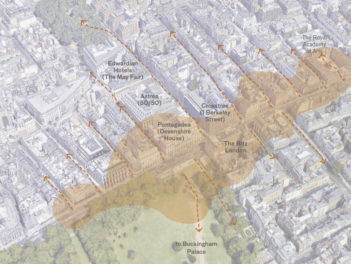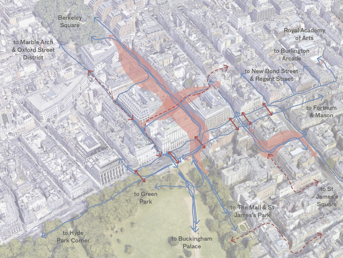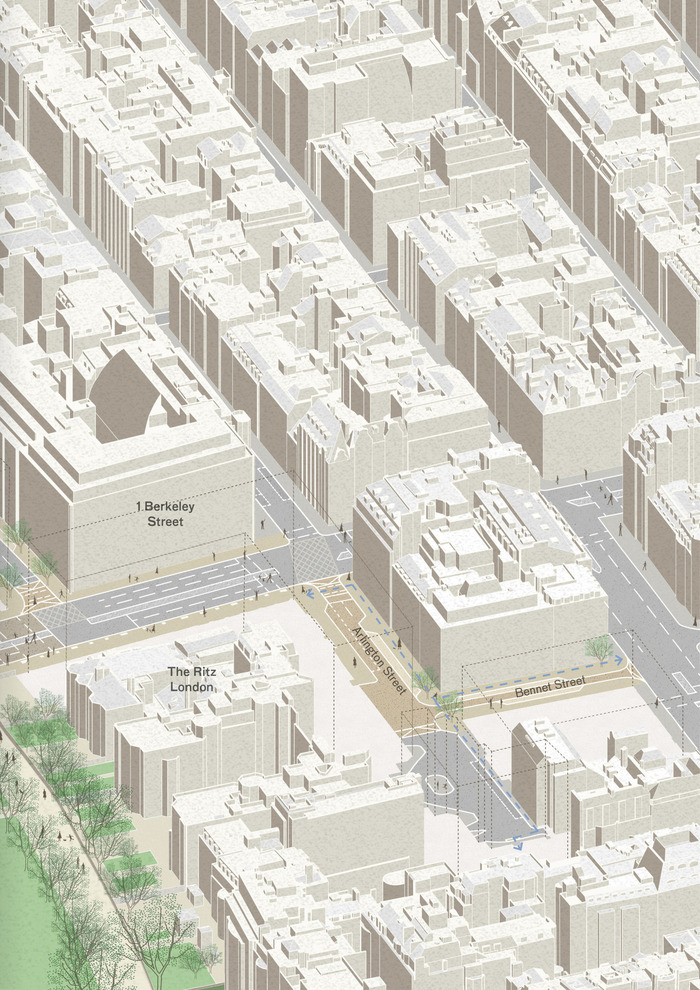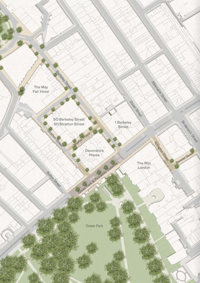 Piccadilly, sitting on the threshold of the Mayfair Conservation Area and St James Conservation Area, holds a significant historic presence in central London, whilst also contributing to the evolving and contemporary fabric of the urban quarter. The proposals enhance the existing character of the area, employing Piccadilly as the key spine which connects the surrounding cultural destinations from the Royal Academy to Hyde Park Corner.