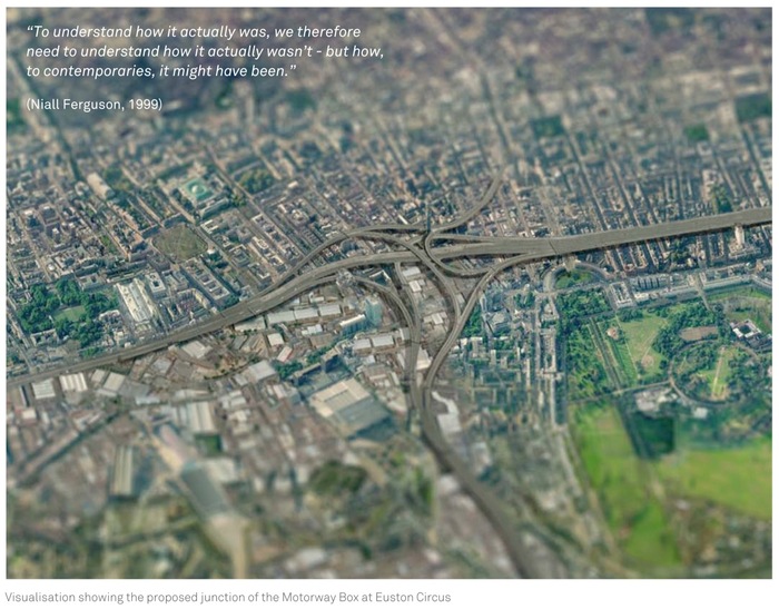 It can be asserted that contemporary society’s expectation for publicly-owned space is an enduring condition of modernity. This legacy may be at odds with the thinking of the day, but suggests a particularly British absorption of modernity. Our research will evaluate and test this hypothesis, presented in four strands – the Past, the Present, Possible Futures, and a Counterfactual History, in which we imagine the consequences for the capital had its Modernist schemes been realised.