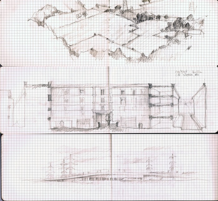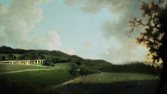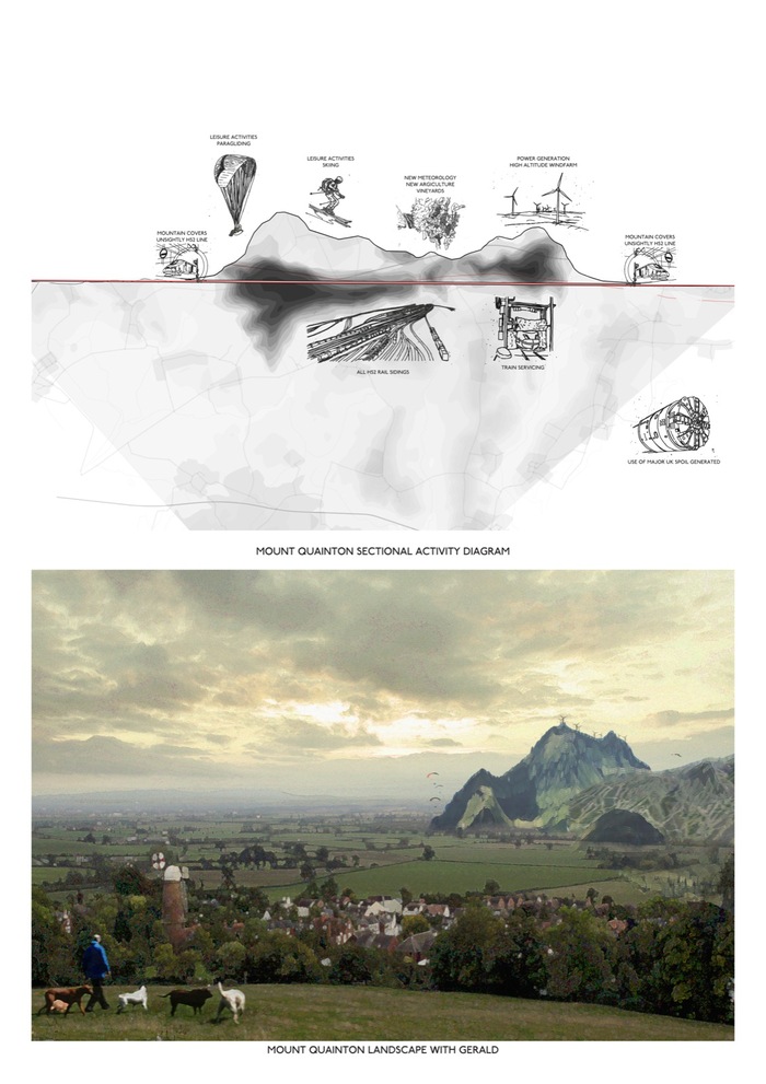 Painting DipticResearch Sketches Throughout ExplorationRoutes Around EustonModel of EustonThis year we will be asking what role does Infrastructure play within our urban understanding and at what point can architecture intervene? Familiar with working at the scale of both the city-scale and detailed design, we will enquire whether there is a place for the “design thinking” of the architect at a super-scale.Our starting point will be Central London’s own hinterland, the unacknowledged and ambiguous zone of tangled viaducts and segregated communities in Camden where the West End collides with infrastructure head on.Super-scaleAs the UK’s biggest infrastructure project, High Speed 2 represents more than the specific challenges of the project itself but also manifests the conundrum of how to balance national strategic ambitions when they literally collide with everyday life. How such new initiatives forcefully touch the ground is clearly relevant yet very few architects take centre stage during the process of their development, leaving it instead to a cast of engineers, experts and planners.In connecting the north and south, HS2 would cut though vast swathes of the countryside and some of England’s most picturesque landscapes. Likewise, the centre of the city will be re-written on a scale unseen for decades since the failed dreams of London’s Ring Way road system in the 1970s. Irrespective of whether HS2 is delivered or not, our study will search for tools that can be applied to future projects, going beyond the particular to offer a wider agenda.Civic-nessUsing the proposed route from London to Birmingham as a test bed for our research we will also consider how primary concerns of HS2 are about operations and performance whilst there should be a parallel role for architecture to bring value, positive social impact and the potential for beauty.Projects will be based both within the landscape and in London. They may range from reconfigurations around Euston Station, looking at city buildings, to building types such as proposed train sheds and maintenance depots, bridges and underpasses - all read through the filter of potential civic or community functions.Materiality and AgencyAlong side this, will run two parallel enquiries. That of Materiality and Agency; The former to ground the projects in a specificity and technical awareness so often missing in infrastructure projects, the latter a key consideration acknowledging that there are active roles one can adopt or evolve as an architect.The students's work was featured in the Landscape Journal.Team: Deborah Saunt David HillsShare: