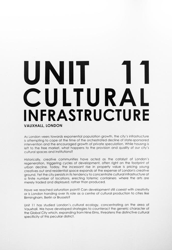 This year the course seeks to define London's cultural infrastructure – the spaces and networks that allow the arts to be produced and disseminated within our urban reality.