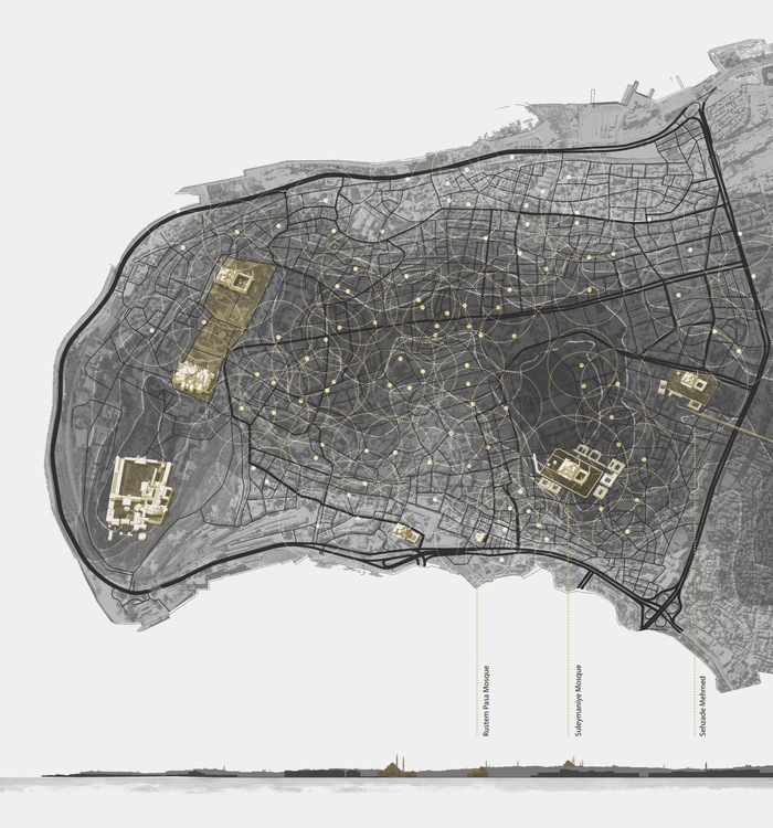 Our study – investigating the conditions that one may encounter when exploring the city under the ‘guidance’ of Sinan’s architecture – has focused on the complex relationship between the natural topography of the peninsula, the divine geometry of these prominent urban landmarks and the unruly character of the urban flesh upon which they rest. We have analysed a number of urban paths in a visual way, using an approach very similar to that championed by the English Townscape Movement in the years following WWII, whilst also exploiting the potential of new mapping technologies and digital tools to fully appreciate the effect of Sinan’s work on the city as a whole.