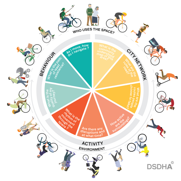 As recipients of the 2016 Built Environment Research Fellowship – awarded by the Royal Commission for the Exhibition of 1851 – DSDHA have investigated the nature of London’s urban mobility, taking into account often overlooked aspects of aesthetic and psychological order. Building on this research, we have devised a methodology for the design of safe and pleasant urban ‘journeys’, with the specific aim to improve the quality of London’s public spaces by making cycling as well as walking more pleasurable and accessible modes of transport.