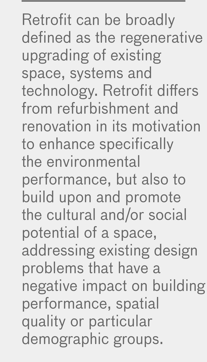 This report helps articulate the three values of retrofit - environmental, cultural and social - operating within the parameters of economic considerations, which should be considered for the future-proofing of our cultural infrastructure. It aims to bring greater clarity to the retrofit process for cultural organisations as well as recommendations for policy-makers and researchers.